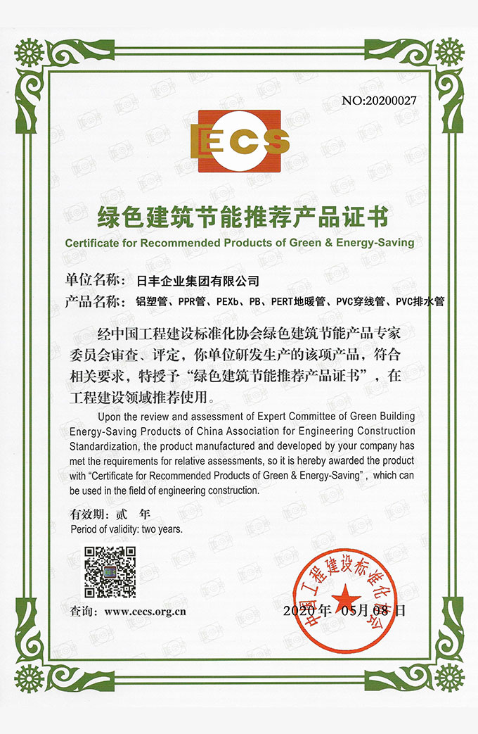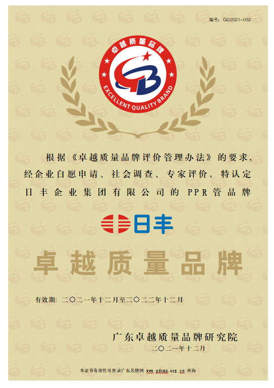 到目前为止,日丰开始形成了完善的货品体系中。这里面,日丰管是投资集团旗帜下制作的通道货品的集齐,涉及PP-R管、水地暖管、党中央配水体统、pvc排污通道体统和pvc穿线通道体统等,并与相对应的的构 件整合为专注的体统。