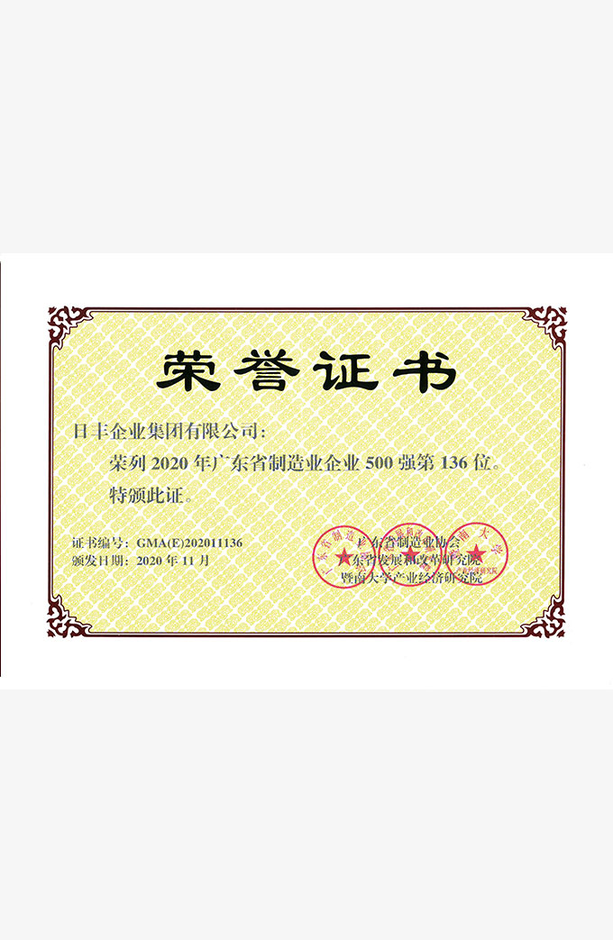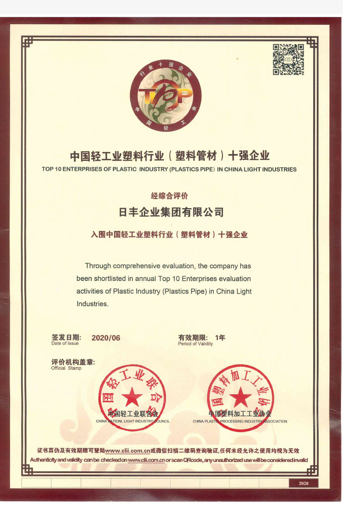 2013 — 2017 跨越发展,开创新篇 2013年以来,日丰开始进入跨越发展的快速发展阶段。佛山三水、天津、湖北黄石、陕西渭南、重庆等大型生产基地的建成投产,使得公司生产规模更是得到空前提升。 2015年11月17日,日丰正式升格为集团公司!日丰也实现了从“佛山日丰”到“中国日丰”的跨越式转变。同年5月17日,日丰正式创建20周年,日丰又迎来一个发展的新纪元!