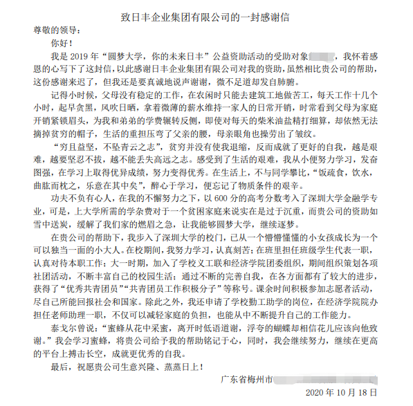 🧔 日丰助学行动自2019年开启以来,就受到了社会各界的广泛关注,我们先后走过了安徽、贵州、四川等30多个城市,足迹遍布大半个中国,资助共计百余名学子实现了大学梦。我们深知知识是未来造梦的翅膀,全力回应每一份陷入困局的求学热忱。
