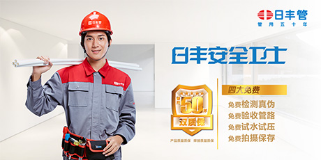 日丰安全卫士是日丰集团特有的增值服务,通过服务工程师上门对管路系统进行产品真伪查询、管路水压检测、管路安装验收、管路图拍摄保存等服务,并承诺为通过日丰安全卫士验收的管路系统提供“双质保”,给消费者一个安全无忧的管道系统。