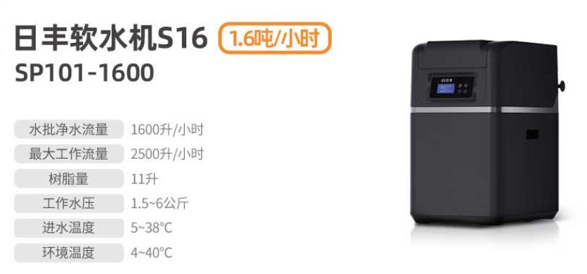 牌子:日丰清水 类产品:日丰软水机S16 机型:SP101-1600 水批净水设备数据流量:1600升/1天 最好事情热度:2500升/1天 不饱和树脂量:11升 岗位水流量:1.5~6多公斤 进水并且没有及时正确地处理环境温度:5~38℃ 生态温度表:4~40℃