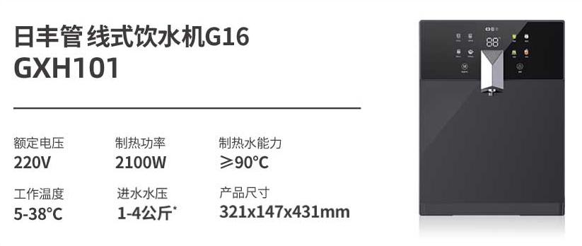 牌子:日丰纯水 商商品编码称:管网式供水机G16 食品具体型号:GXH101 新产品简介一下: 载荷系数电流电压:220V 业务体温:5-38℃ 空调制热马力:2100W 进水的进水管:1-4100-150 制冷水力量:不低于等同于90℃ 货品尺码:321x147x431mm *kg是该行业英语口语化的阐述的单位,1kg=0.1兆帕(MPa)