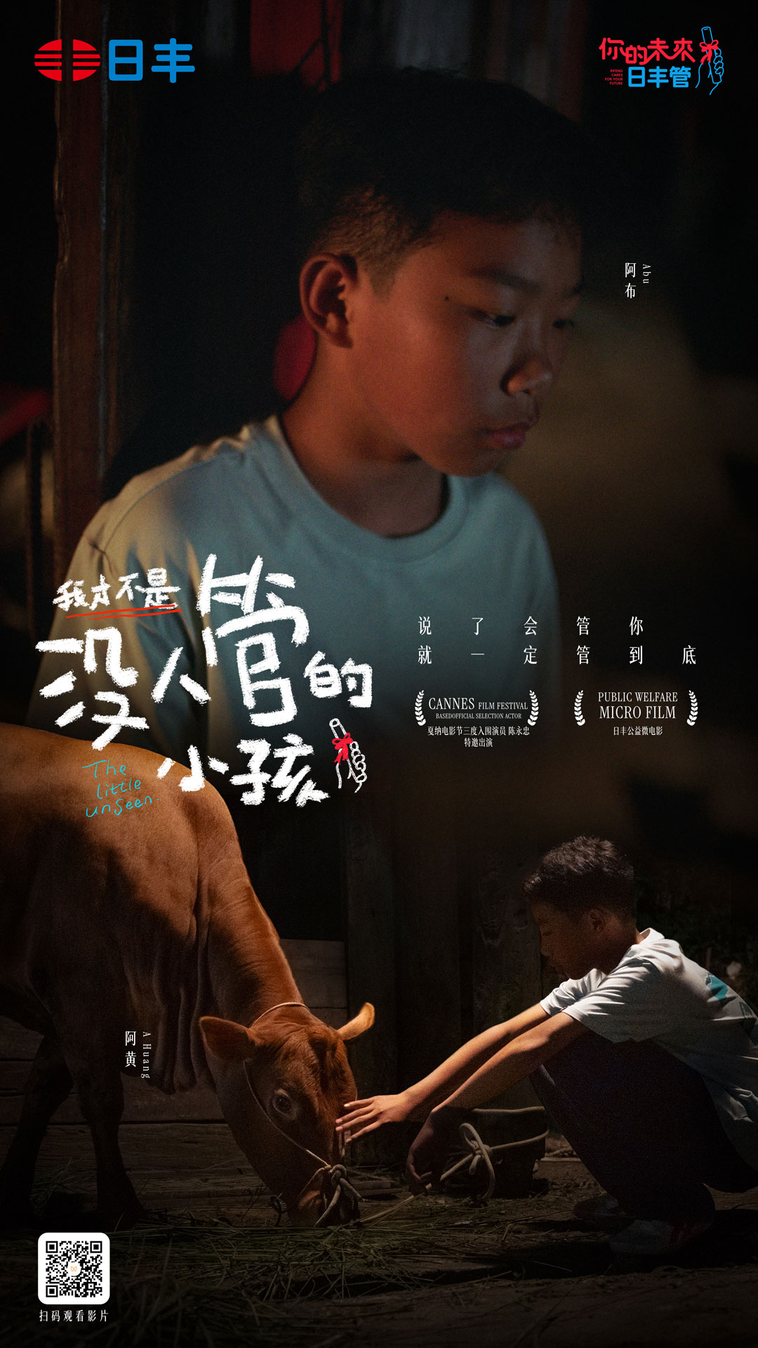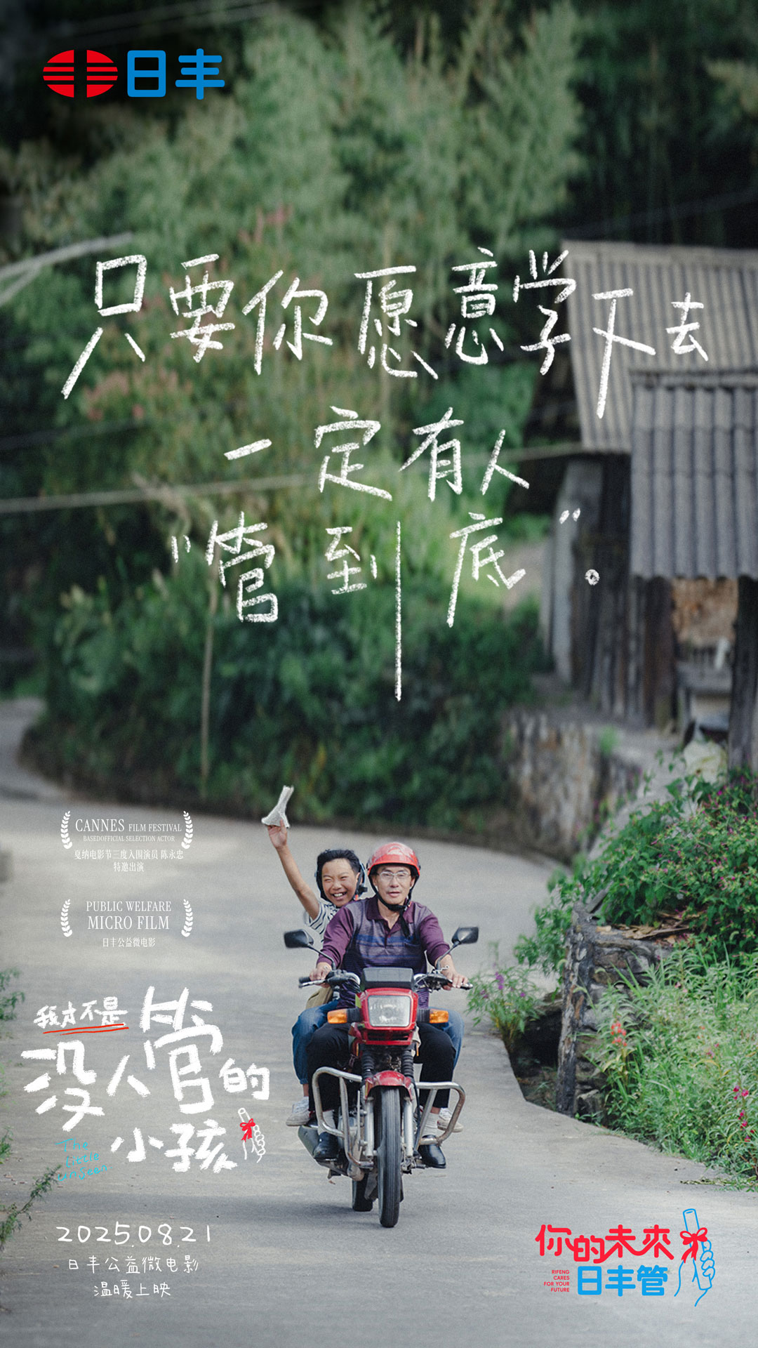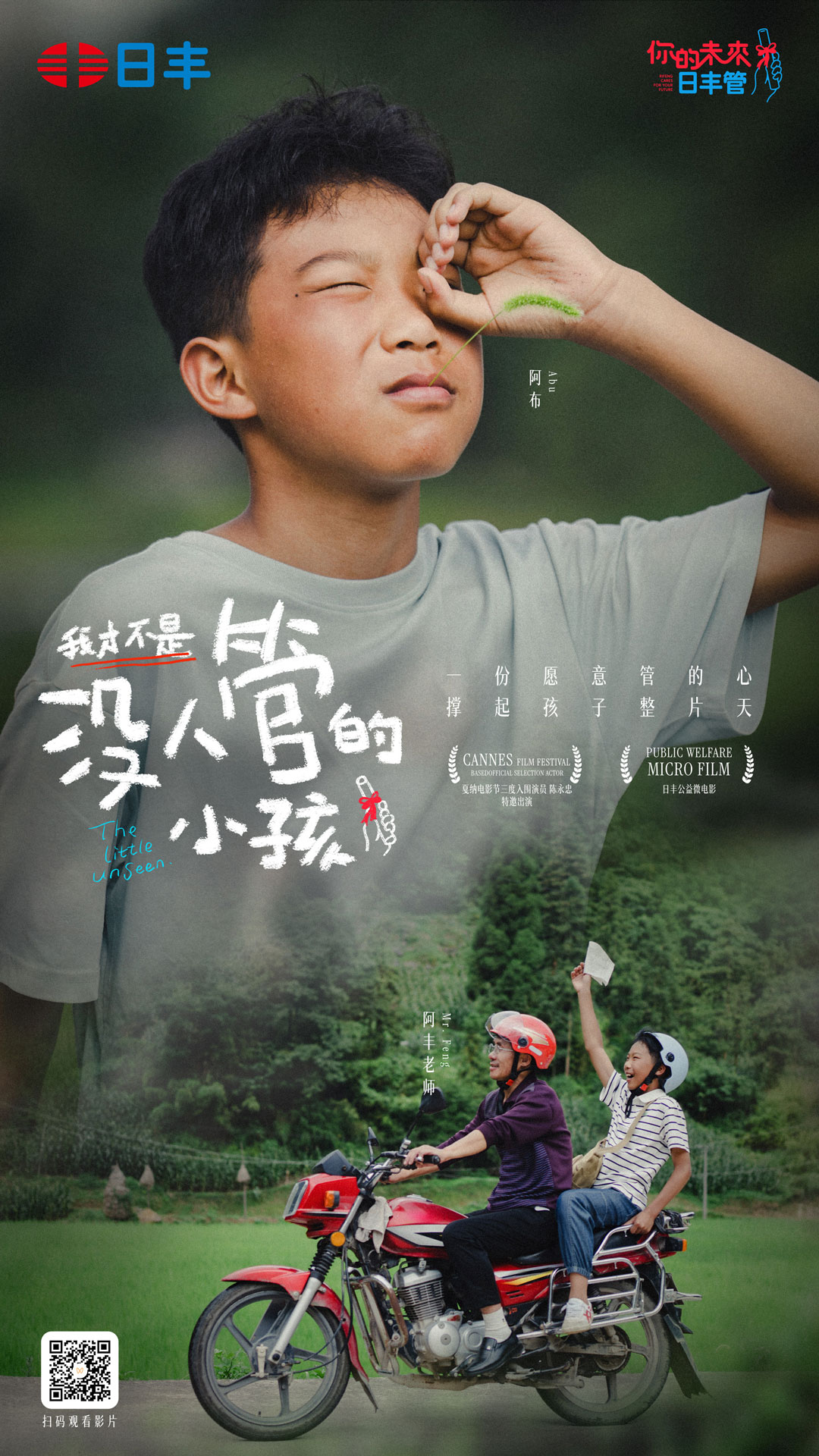 在浮躁、追求噱头的时代,这份朴实的决心打动了每位公益参与者与传播创作者。其中包括戛纳电影节入围演员陈永忠老师(毕赣《路边野餐》男主),即影片中“阿丰老师“的饰演者,也包括制作团队与公益合作方。所有人协力让这个温暖的故事得以圆满完成,让更多人看见助学的意义。